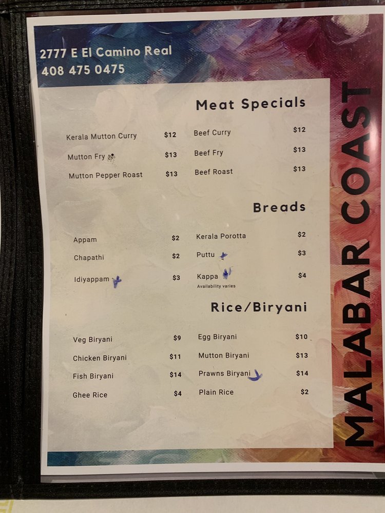 Located in Santa Clara, CA, Malabar Coast offers a casual, trendy, and classy dining experience. With limited vegetarian options and a variety of utilities such as reservations, delivery, and catering, this restaurant caters to a wide range of customers. You can enjoy your meal indoors or outdoors with covered seating available. The menu features beer and wine options and a moderate noise level, making it suitable for groups or a romantic evening. Whether you choose to dine in or take out, the restaurant provides excellent waiter service and free Wi-Fi. Don't forget to bring your furry friend, as dogs are allowed on the premises. Overall, Malabar Coast provides a welcoming atmosphere with delicious dishes that are sure to satisfy your cravings.